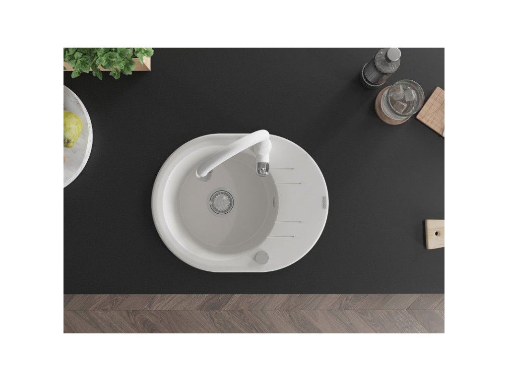 Granitový drez Mexen Kevin s 1 misou, odkapávačom a kuchynskou batériou Savita, biely - 6517-20-672601-20