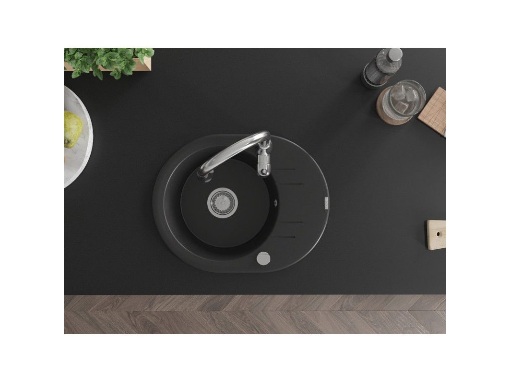 Granitový drez Mexen Kevin s 1 misou, odkapávačom a kuchynskou batériou Savita, čierny - 6517-77-672601-00