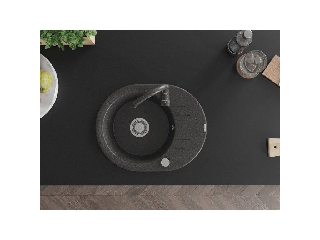 Granitový drez Mexen Kevin s 1 misou, odkapávačom a kuchynskou batériou Telma, bodkovaný - 6517-76-670200-76