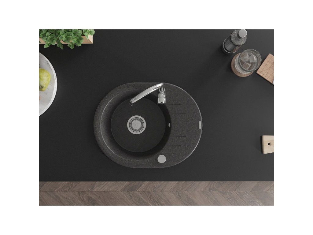 Granitový drez Mexen Kevin s 1 misou, odkapávačom a kuchynskou batériou Telma, čierna škvrnitá - 6517-76-670200-00