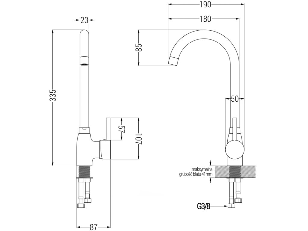 Dosah výtoku: 180 mm