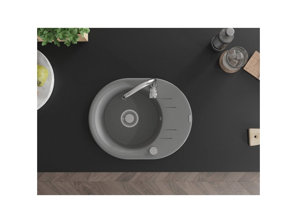 Granitový drez Mexen Kevin s 1 misou, odkapávačom a kuchynskou batériou Telma, sivý - 6517-71-670200-00