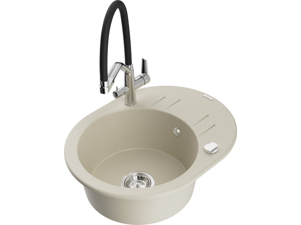 Granitový drez Mexen Kevin s 1 misou a kuchynskou batériou Duo, béžový - 6517-69-671701-07