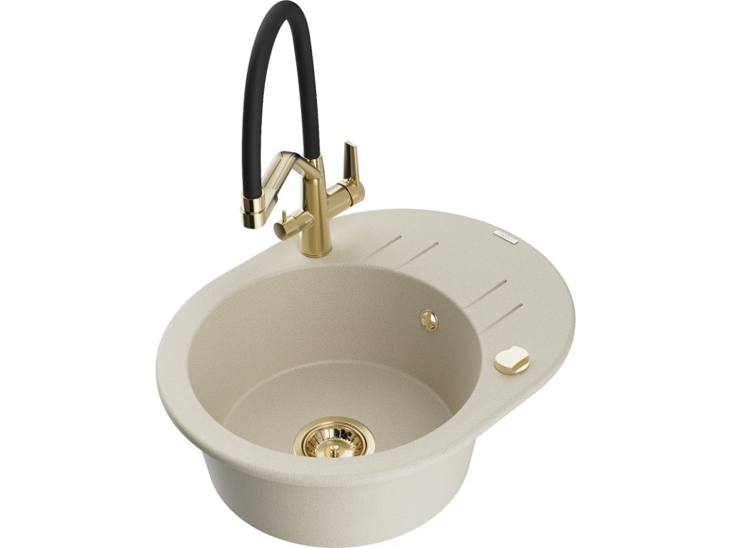 Granitový drez Mexen Kevin s 1 misou a kuchynskou batériou Duo, béžový - 6517-69-671701-57-G