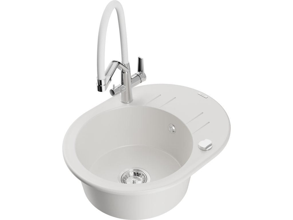 Granitový drez Mexen Kevin s 1 misou a kuchynskou batériou Duo, biely - 6517-20-671701-02