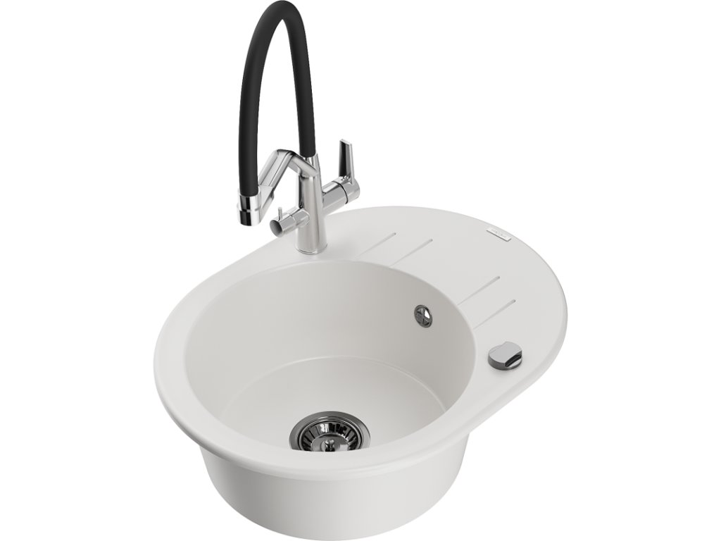 Granitový drez Mexen Kevin s 1 misou a kuchynskou batériou Duo, biely - 6517-20-671701-07-B