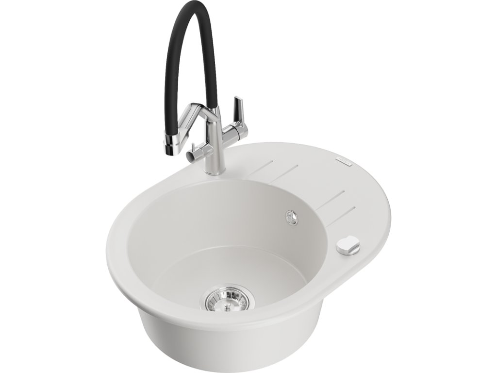 Granitový drez Mexen Kevin s 1 misou a kuchynskou batériou Duo, biely - 6517-20-671701-07