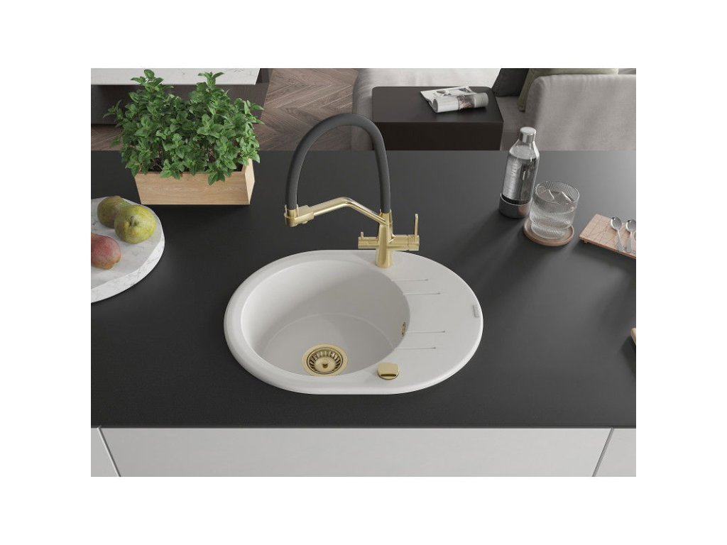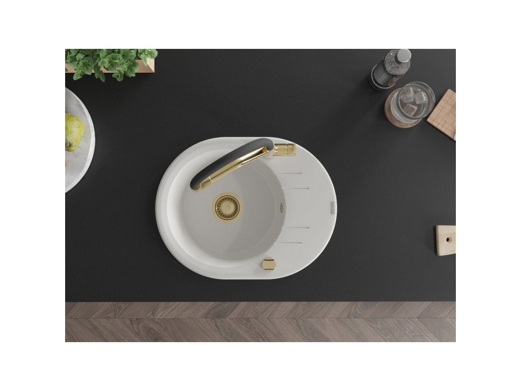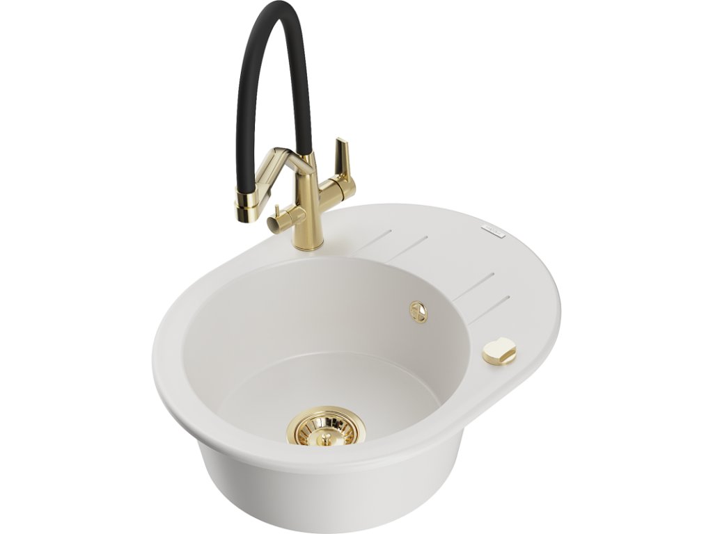 Granitový drez Mexen Kevin s 1 misou a kuchynskou batériou Duo, biely - 6517-20-671701-57-G