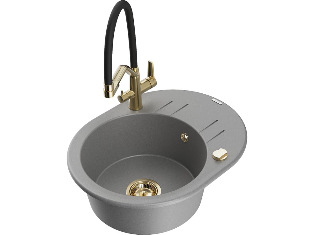 Granitový drez Mexen Kevin s 1 misou a kuchynskou batériou Duo, sivý - 6517-71-671701-57-G