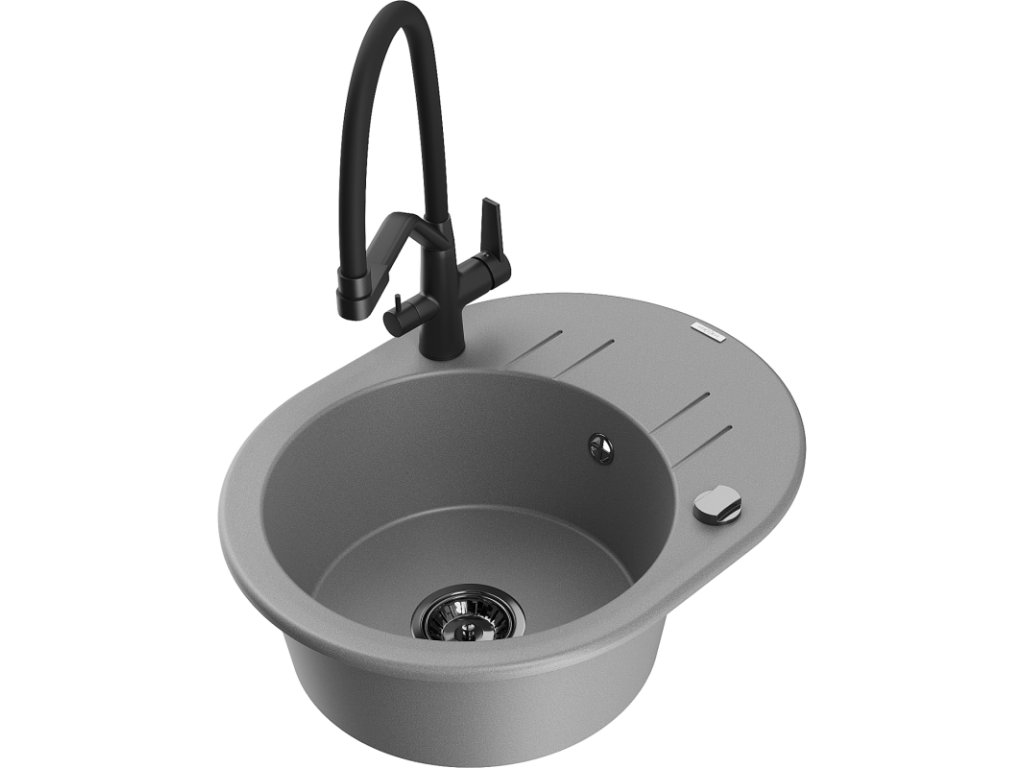 Granitový drez Mexen Kevin s 1 misou a kuchynskou batériou Duo, sivý - 6517-71-671701-70-B