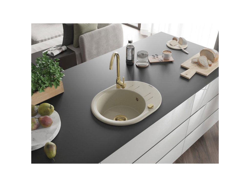 Granitový drez Mexen Kevin s 1 misou a odkapávačom 586 x 458 mm, béžový, zlatý sifón - 6517581005-69-G