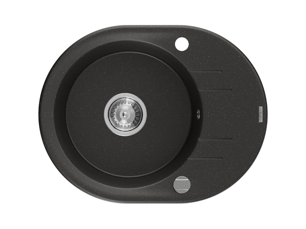Granitový drez Mexen Kevin s 1 misou a odkapávačom 586 x 458 mm, čierna/zlatá metalíza, chrómový sifón - 6517581005-75