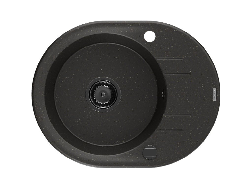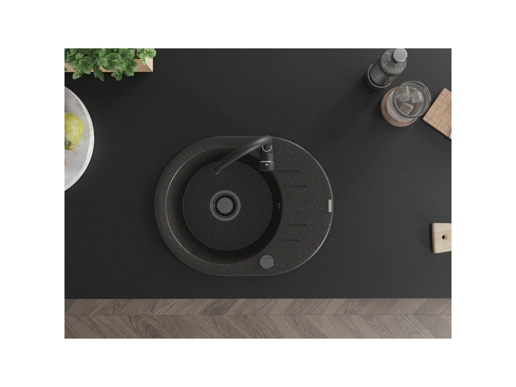 Granitový drez Mexen Kevin s 1 misou a odkapávačom 586 x 458 mm, čierna/zlatá metalíza, čierny sifón - 6517581005-75-B