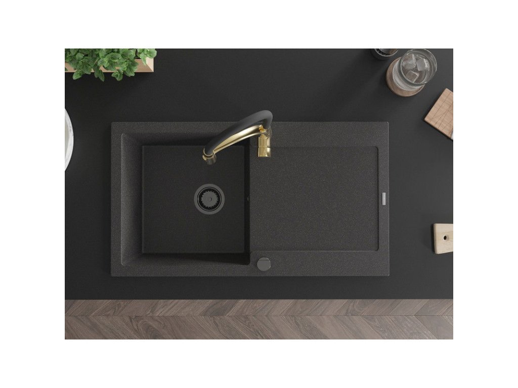 Granitový drez Mexen Leo s 1 misou, odkapávačom a batériou Aster, čierny bodkovaný - 6501-76-73450-57-B