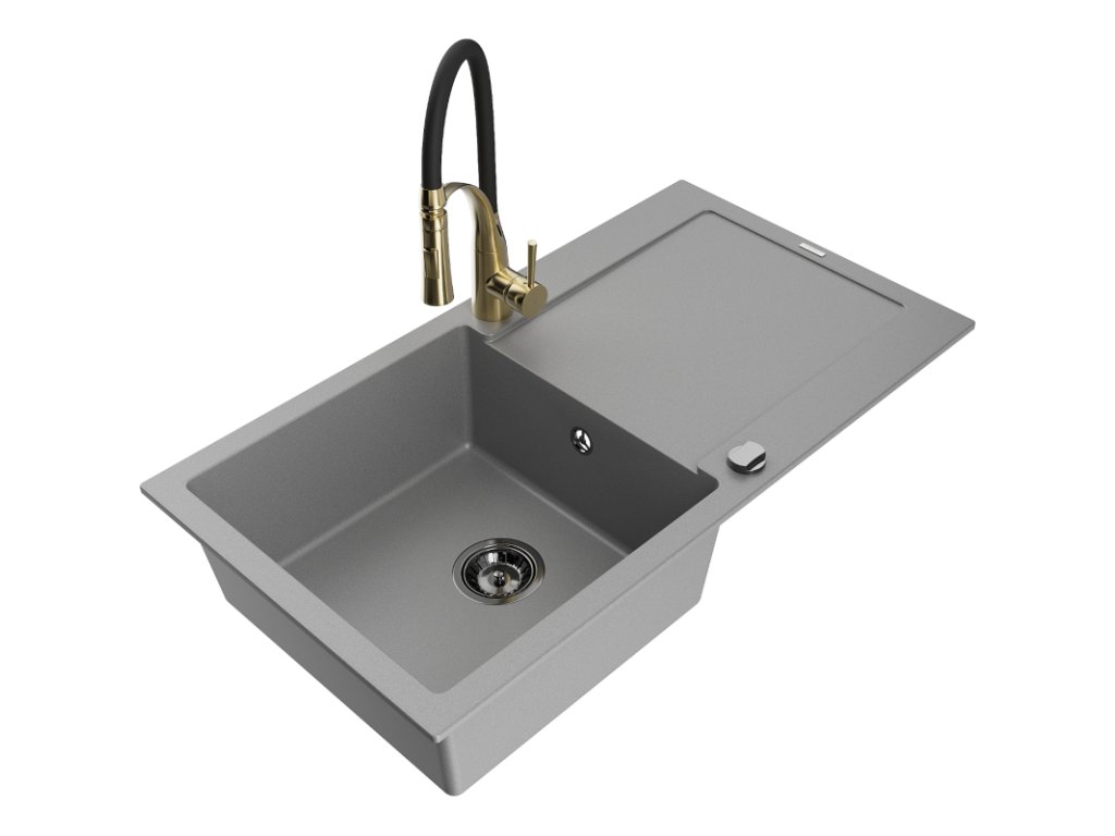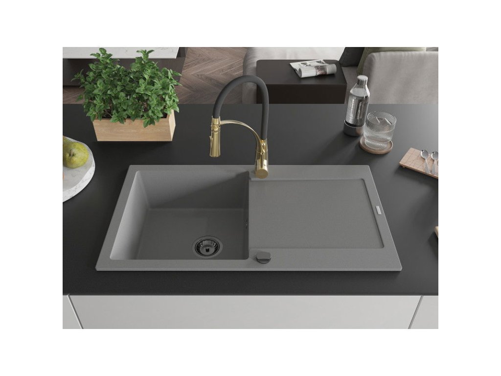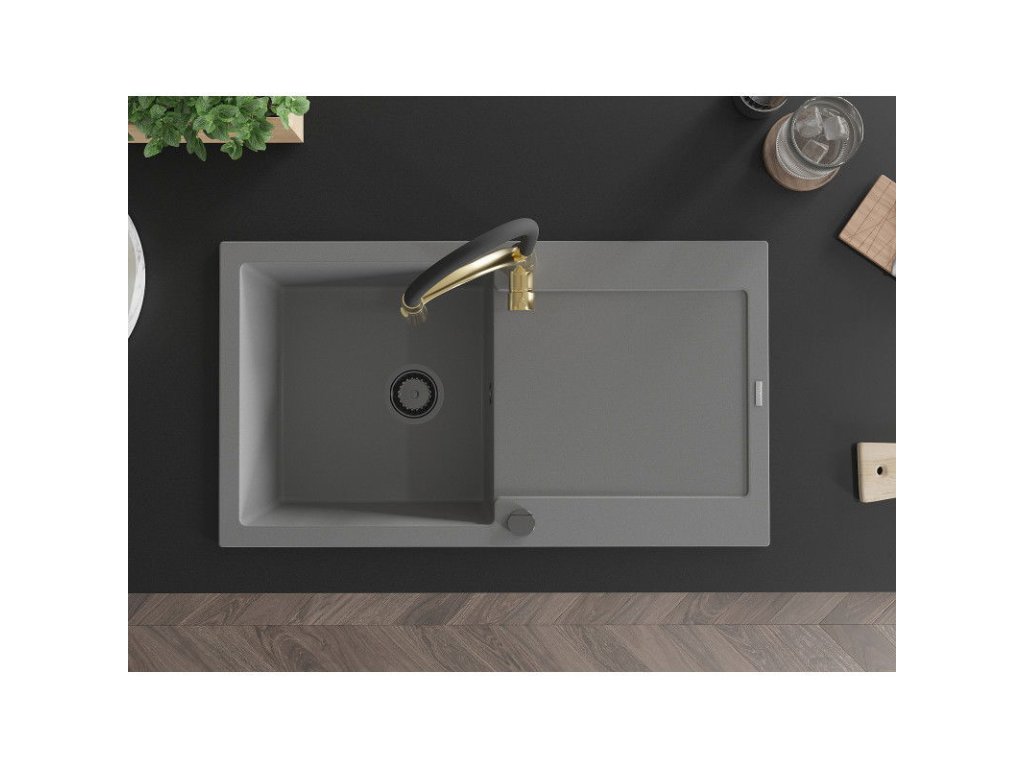 Granitový drez Mexen Leo s 1 misou, odkapávačom a batériou Aster, sivý - 6501-71-73450-57-B