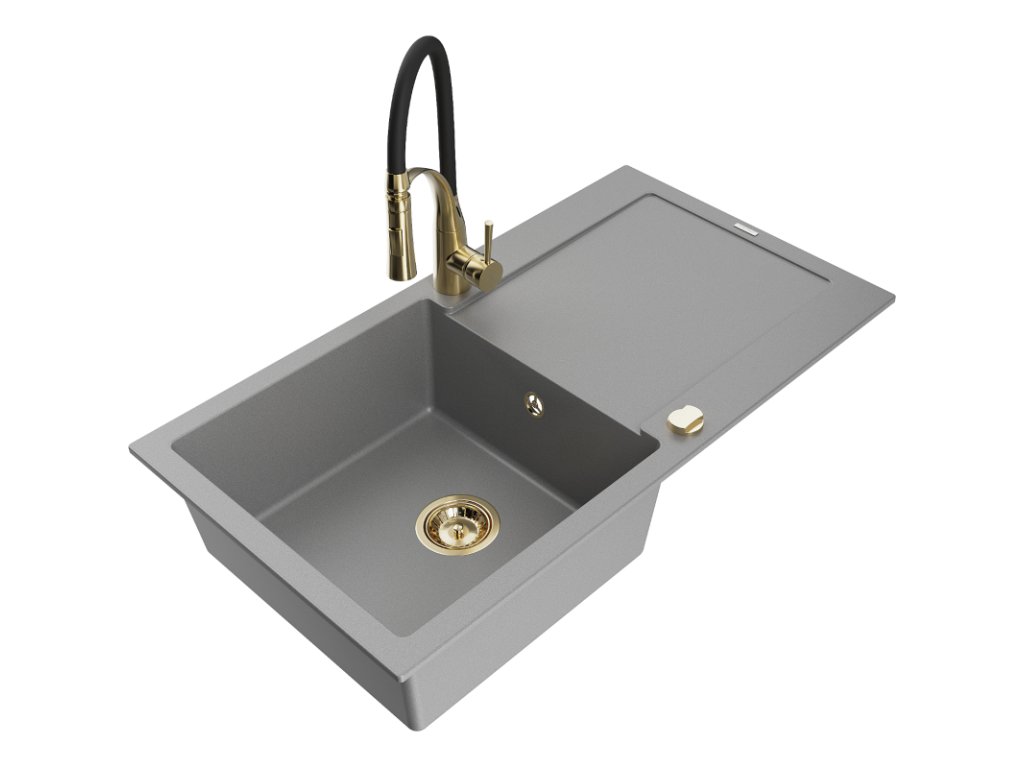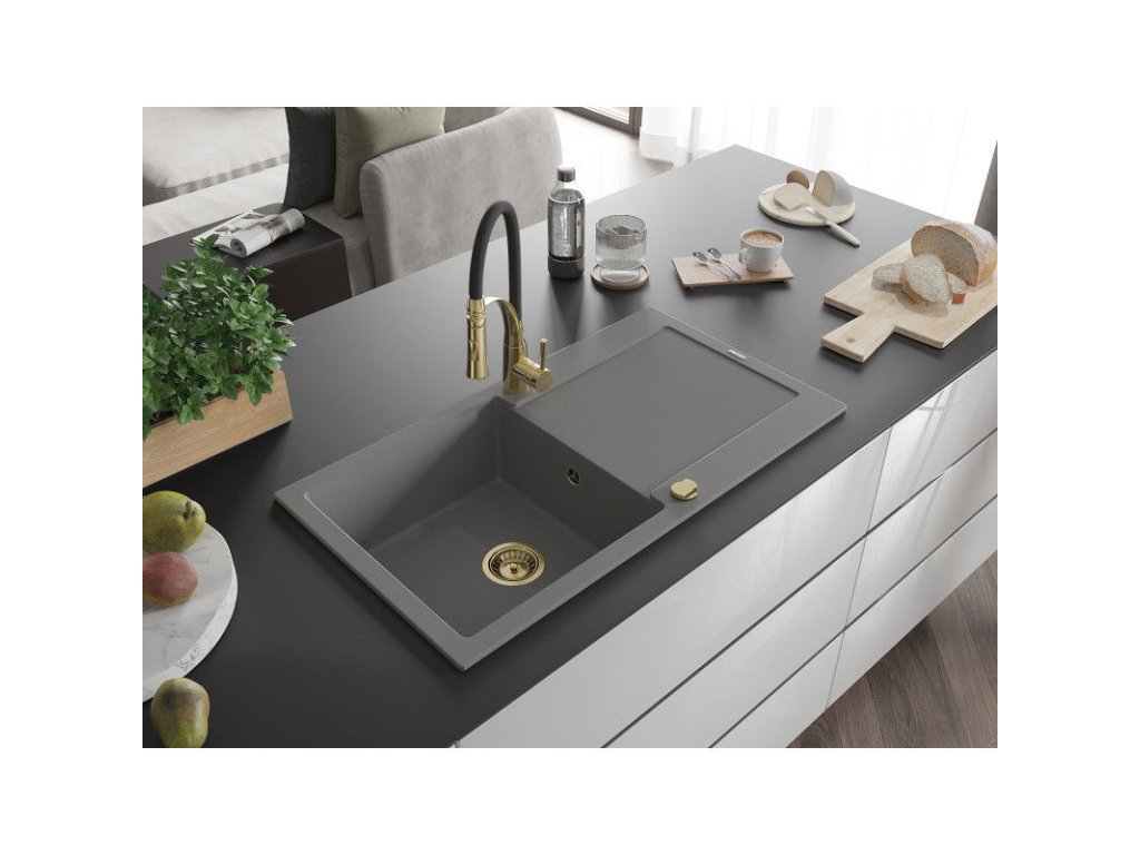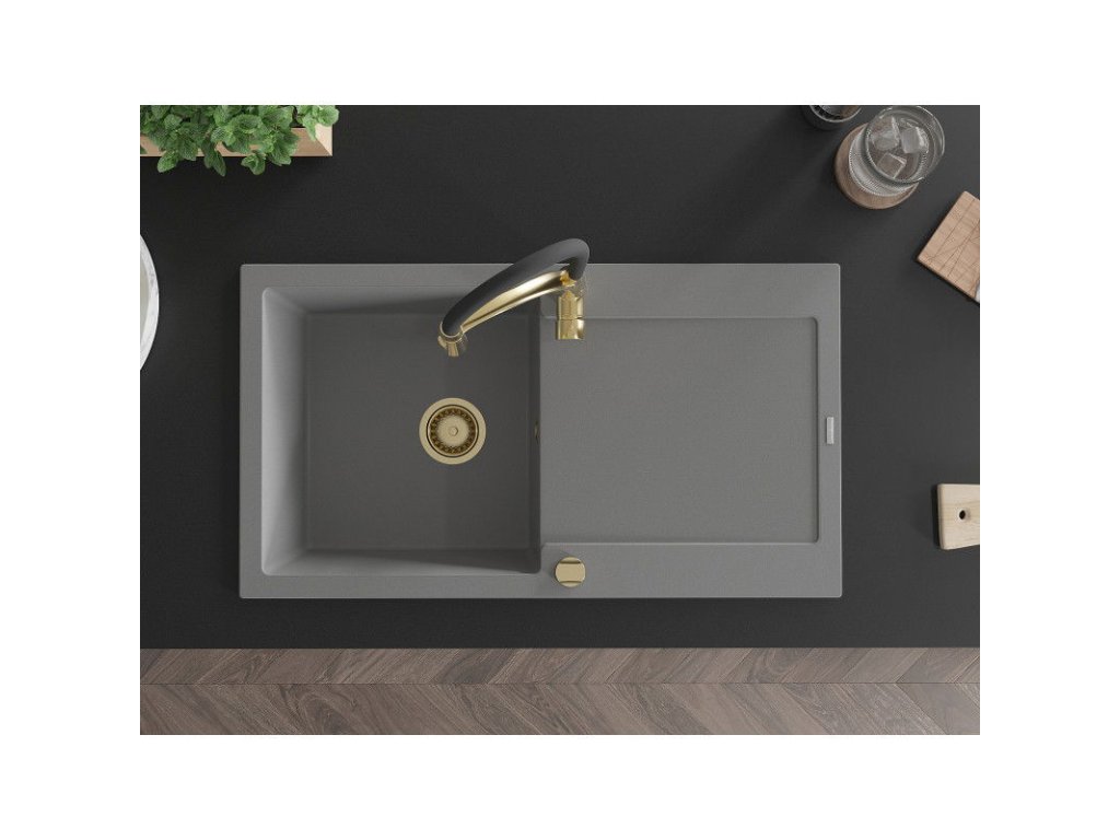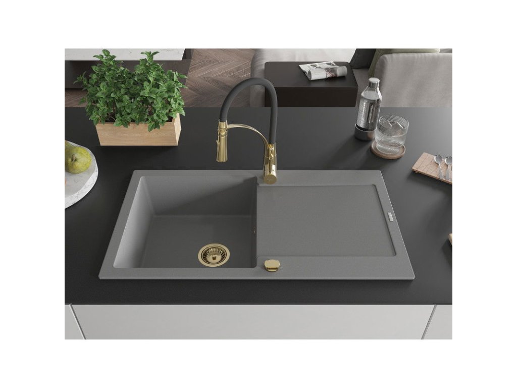 Granitový drez Mexen Leo s 1 misou, odkapávačom a batériou Aster, sivý - 6501-71-73450-57-G