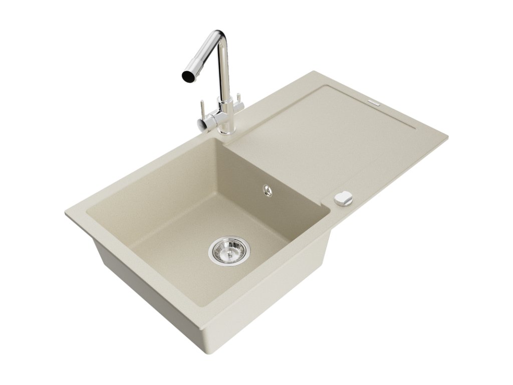 Granitový drez Mexen Leo s 1 misou, odkapávačom a batériou Duero, béžový - 6501-69-671600-00