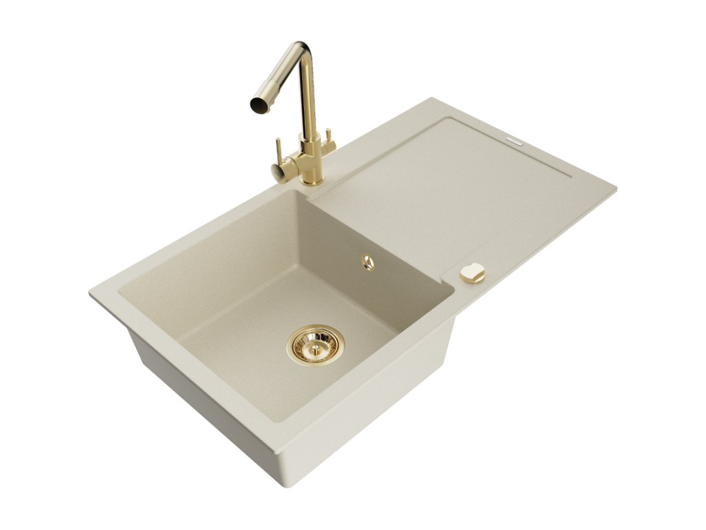 Granitový drez Mexen Leo s 1 misou, odkapávačom a batériou Duero, béžový - 6501-69-671600-50