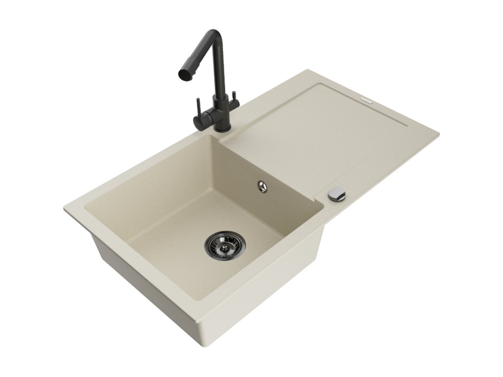 Granitový drez Mexen Leo s 1 misou, odkapávačom a batériou Duero, béžový - 6501-69-671600-70