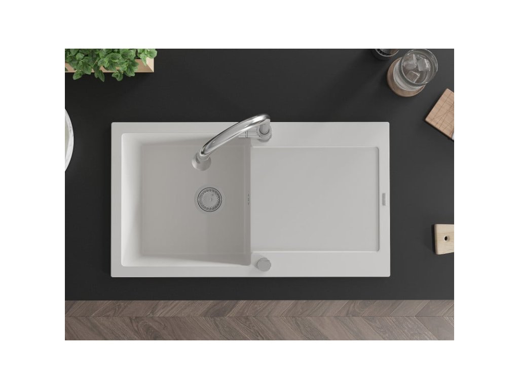 Granitový drez Mexen Leo s 1 misou, odkapávačom a batériou Elia, biely - 6501-20-670101-00