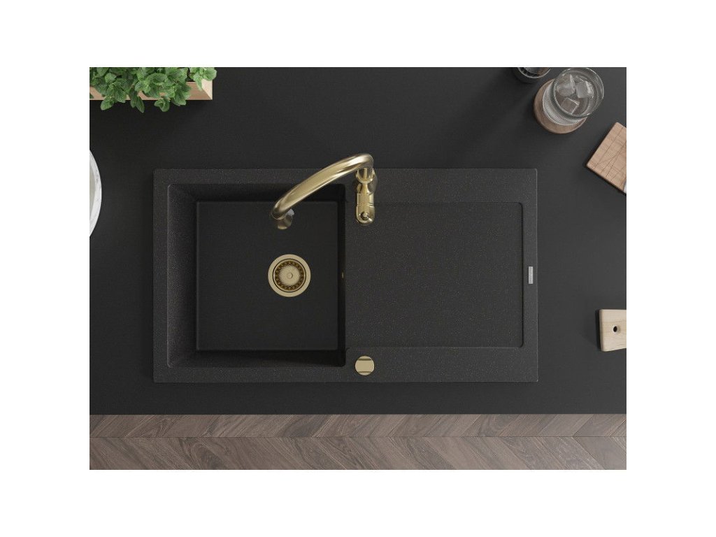 Granitový drez Mexen Leo s 1 misou, odkapávačom a batériou Savita, čierna/strieborná metalíza - 6501-73-672601-50
