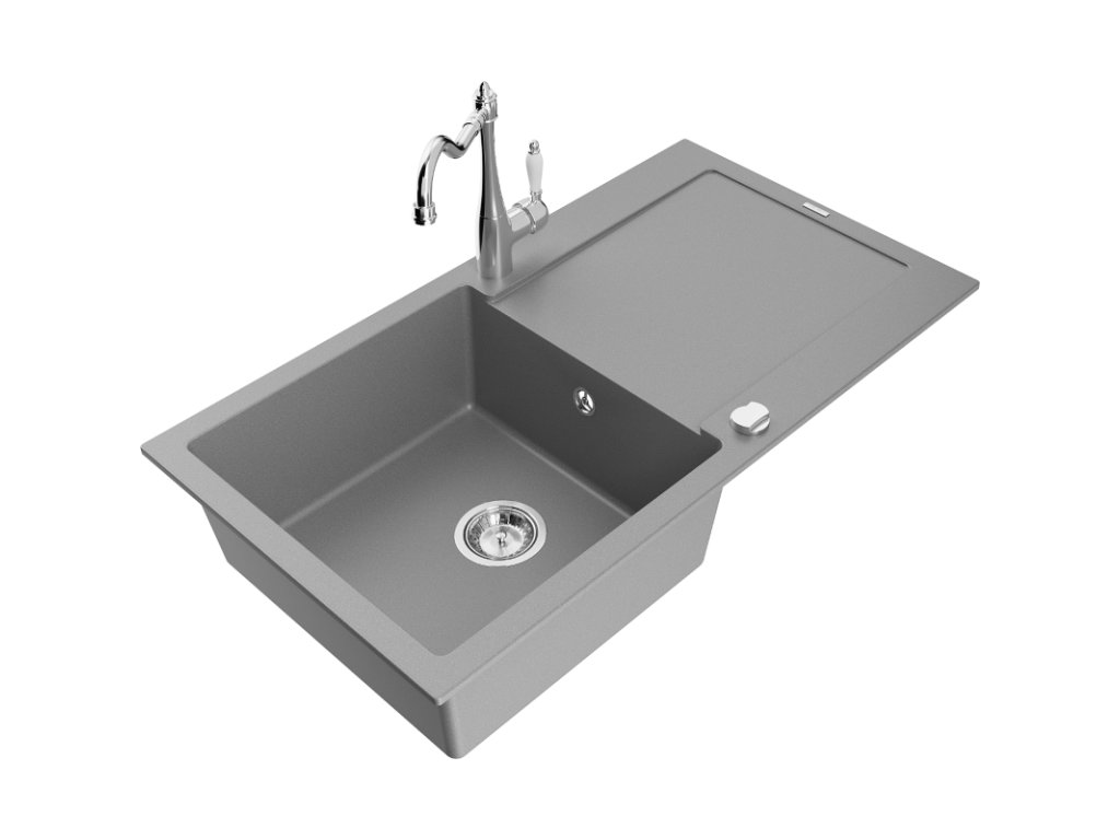 Granitový drez Mexen Leo s 1 misou, odkapávačom a kuchynskou batériou Carla, sivý - 6501-71-670700-00
