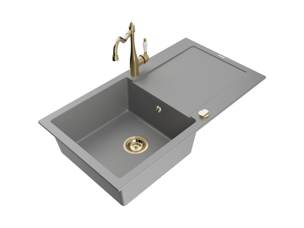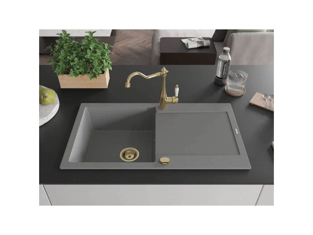 Granitový drez Mexen Leo s 1 misou, odkapávačom a kuchynskou batériou Carla, sivý - 6501-71-670700-50