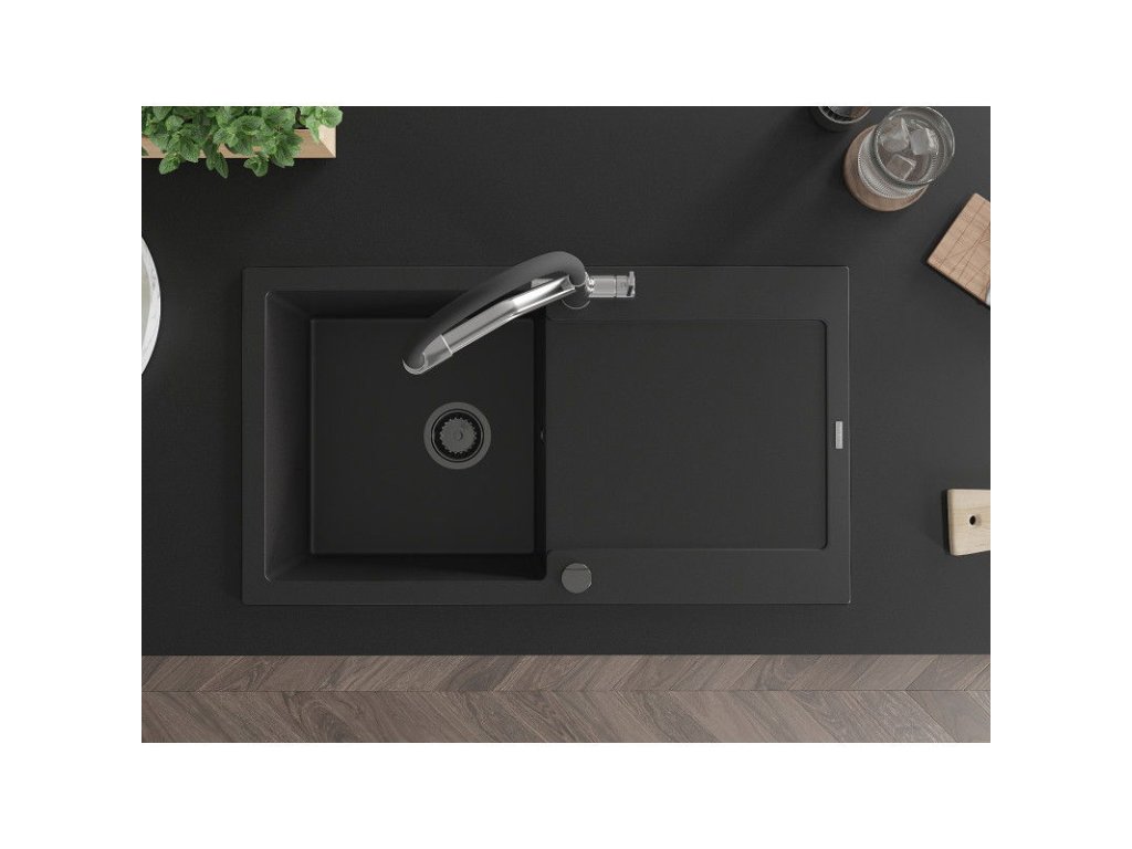 Granitový drez Mexen Leo s 1 misou, odkapávačom a kuchynskou batériou Duo, čierny - 6501-77-671701-07-B