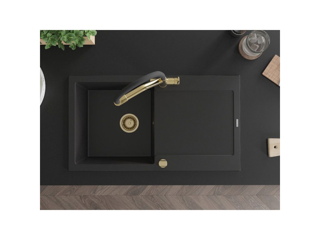 Granitový drez Mexen Leo s 1 misou, odkapávačom a kuchynskou batériou Duo, čierny - 6501-77-671701-57-G