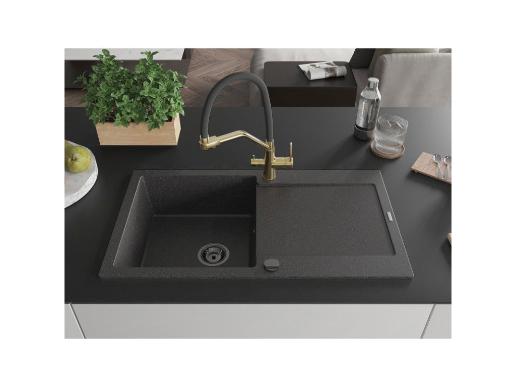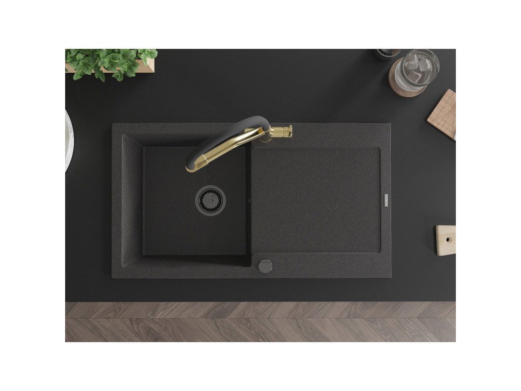Granitový drez Mexen Leo s 1 misou, odkapávačom a kuchynskou batériou Duo, čierny bodkovaný - 6501-76-671701-57-B