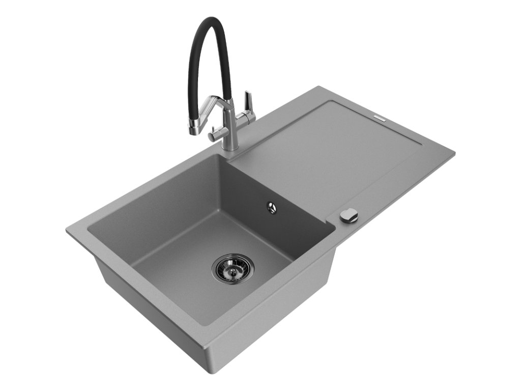 Granitový drez Mexen Leo s 1 misou, odkapávačom a kuchynskou batériou Duo, sivý - 6501-71-671701-07-B
