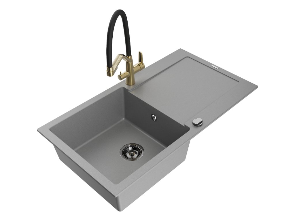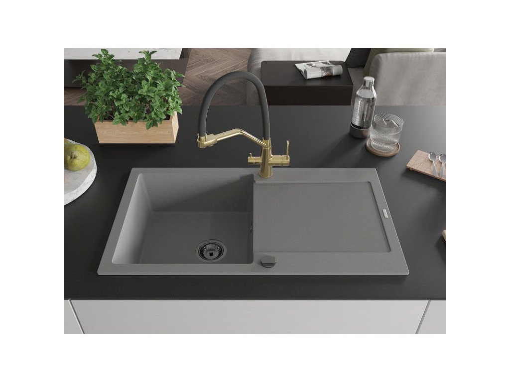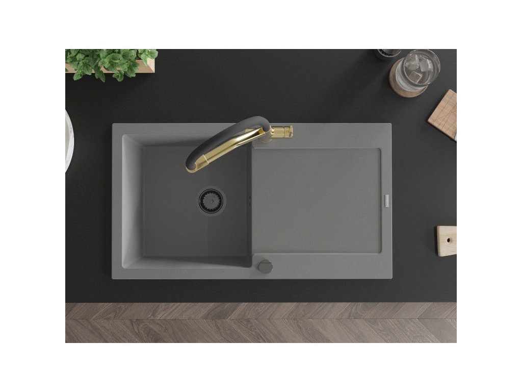 Granitový drez Mexen Leo s 1 misou, odkapávačom a kuchynskou batériou Duo, sivý - 6501-71-671701-57-B