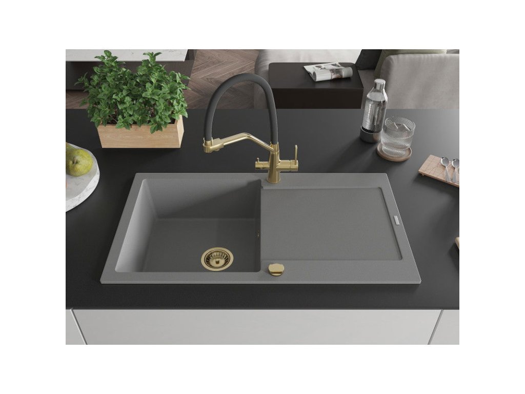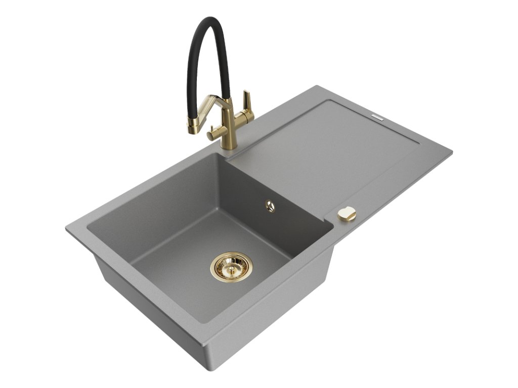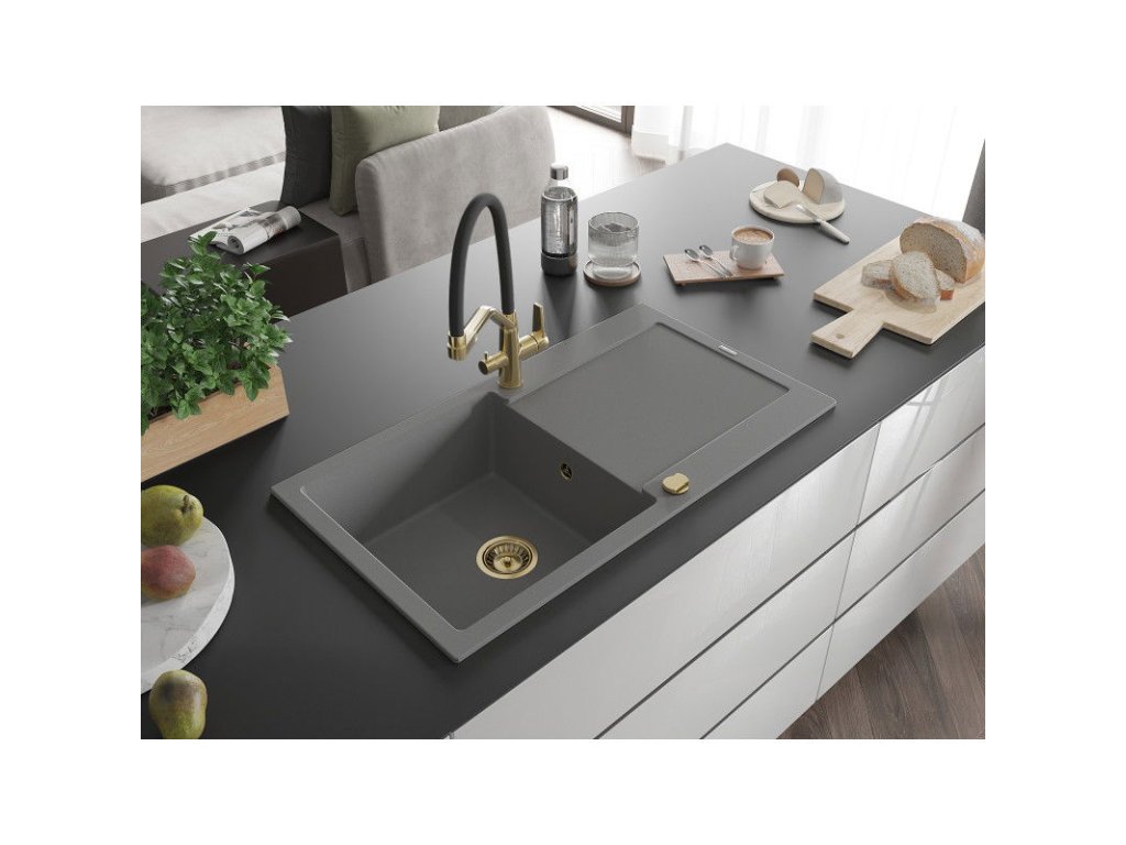 Granitový drez Mexen Leo s 1 misou, odkapávačom a kuchynskou batériou Duo, sivý - 6501-71-671701-57-G