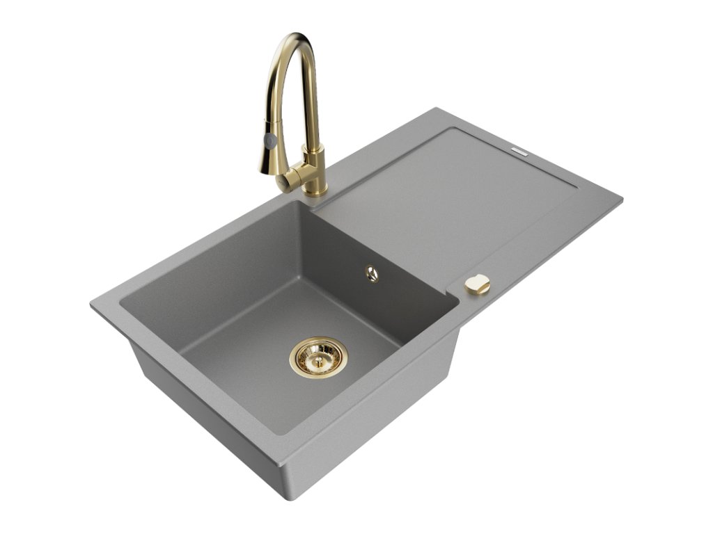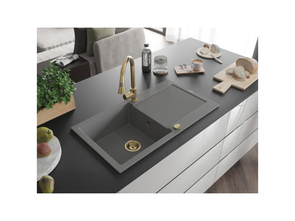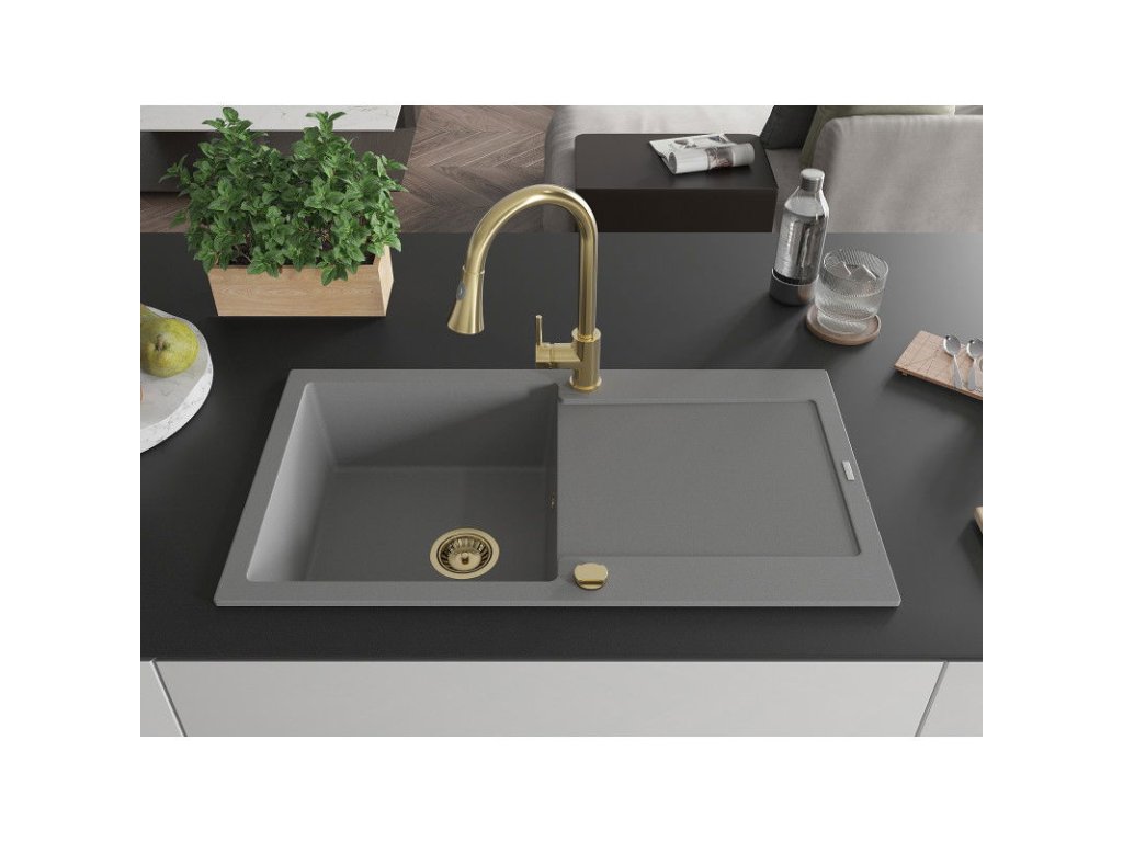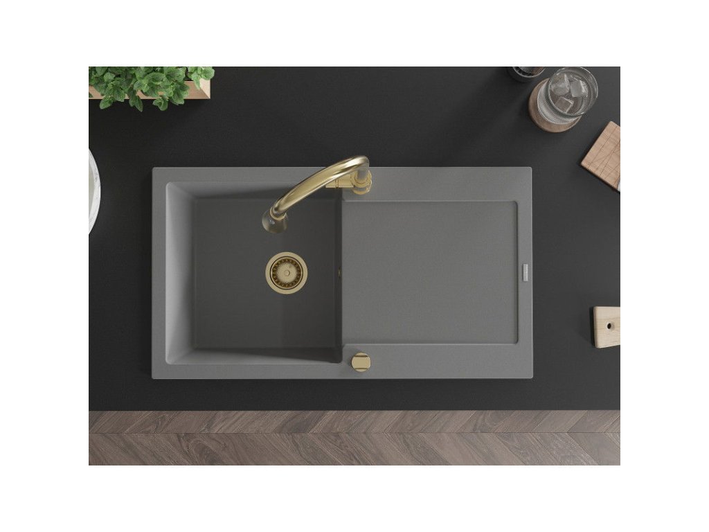 Granitový drez Mexen Leo s 1 misou, odkapávačom a kuchynskou batériou Elia, sivý - 6501-71-670101-50