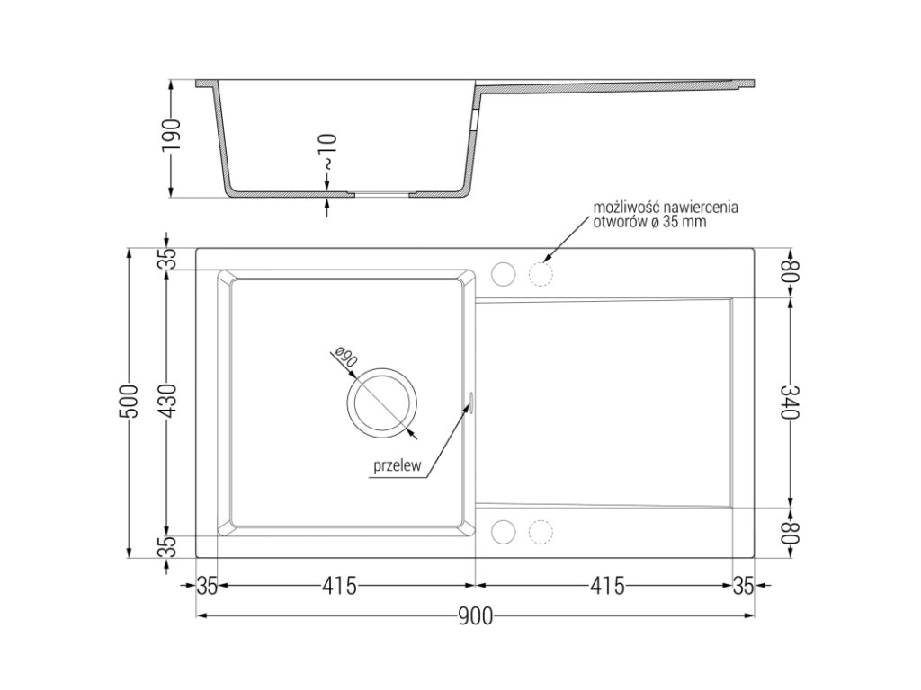 Dva ďalšie otvory pod výliskom ø35 na vlastné dierovanie