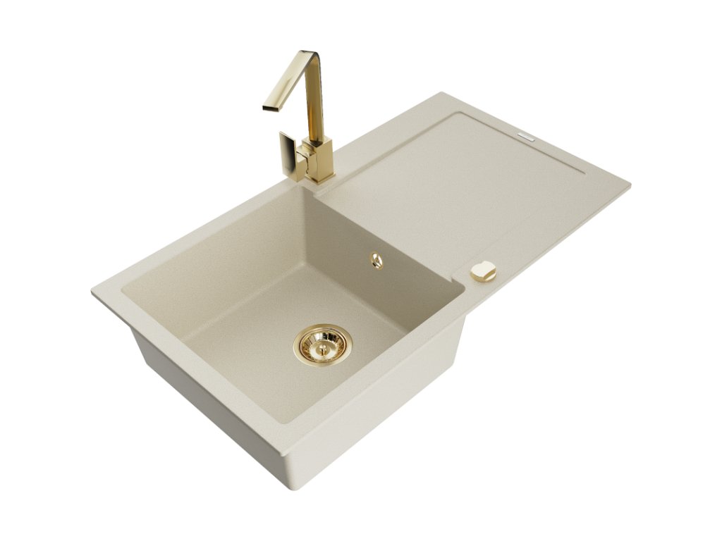 Granitový drez Mexen Leo s 1 misou, odkapávačom a kuchynskou batériou Rita, béžový - 6501-69-670300-50