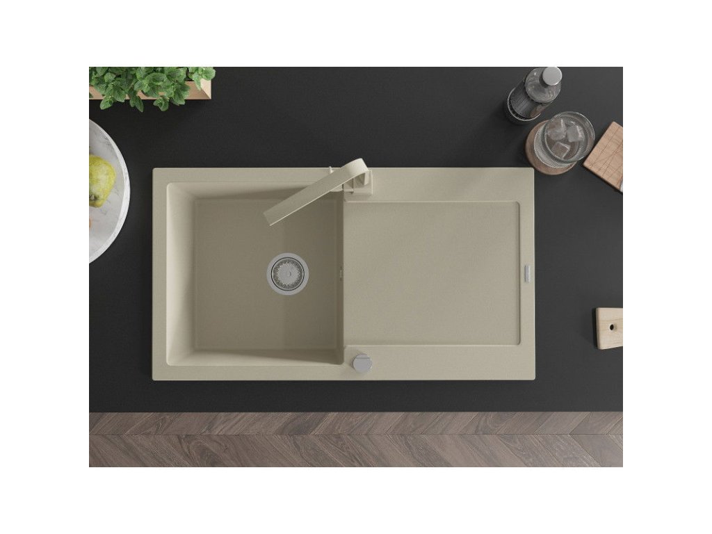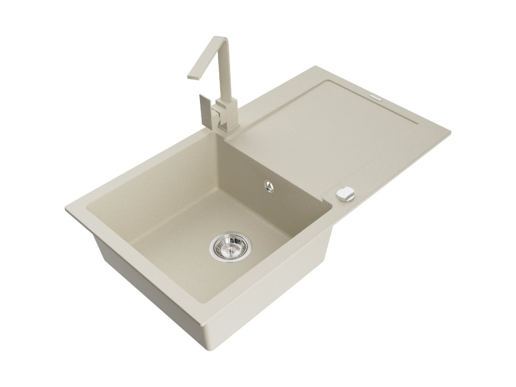 Granitový drez Mexen Leo s 1 misou, odkapávačom a kuchynskou batériou Rita, béžový - 6501-69-670300-69