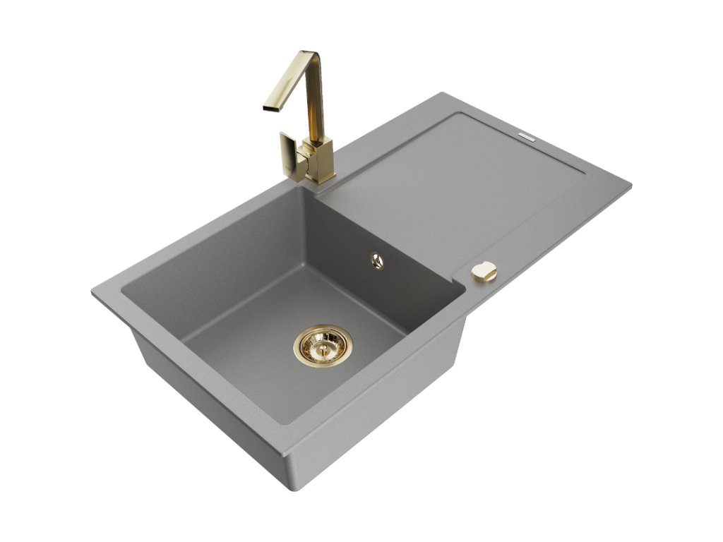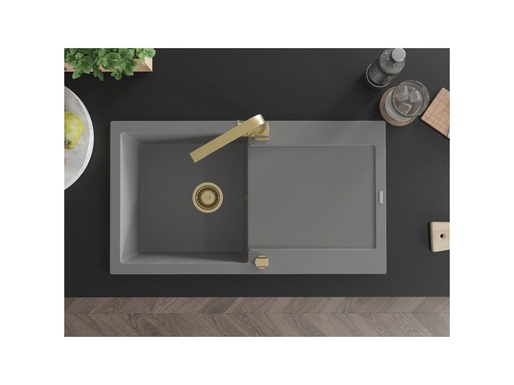Granitový drez Mexen Leo s 1 misou, odkapávačom a kuchynskou batériou Rita, sivý - 6501-71-670300-50