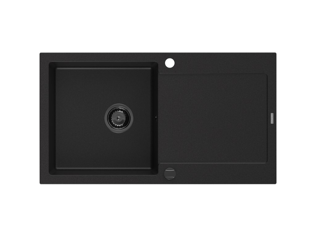 Granitový drez Mexen Leo s 1 misou a odkapávačom 900 x 500 mm, čierny, čierny sifón - 6501901010-77-B
