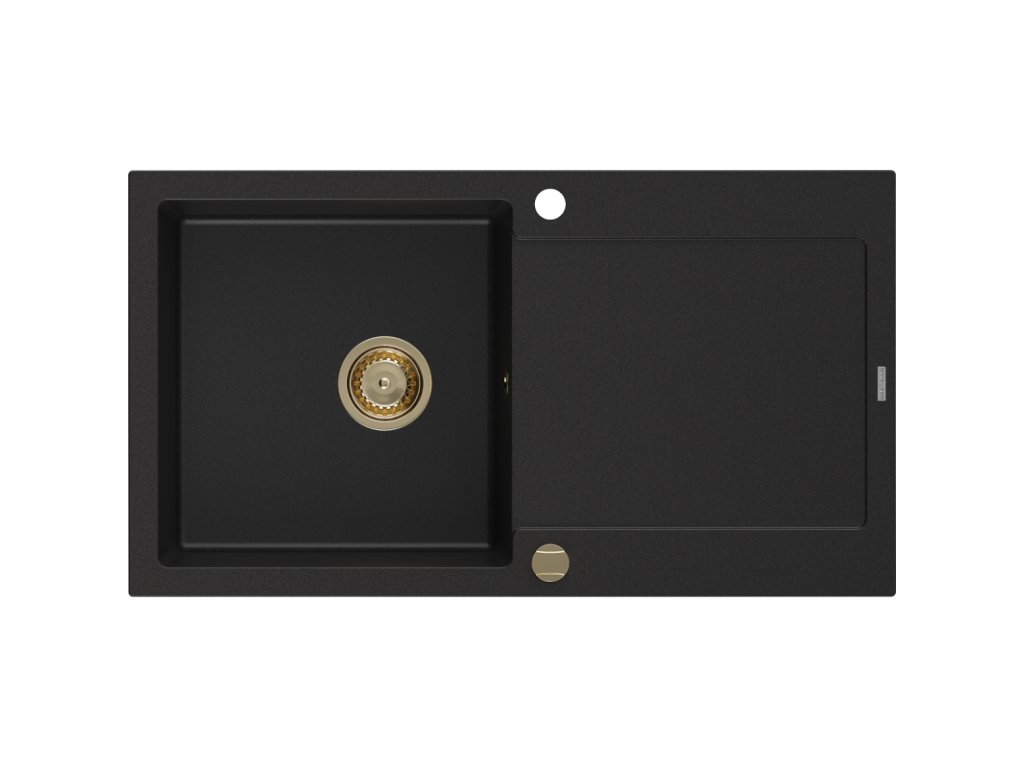 Granitový drez Mexen Leo s 1 misou a odkapávačom 900 x 500 mm, čierny, zlatý sifón - 6501901010-77-G