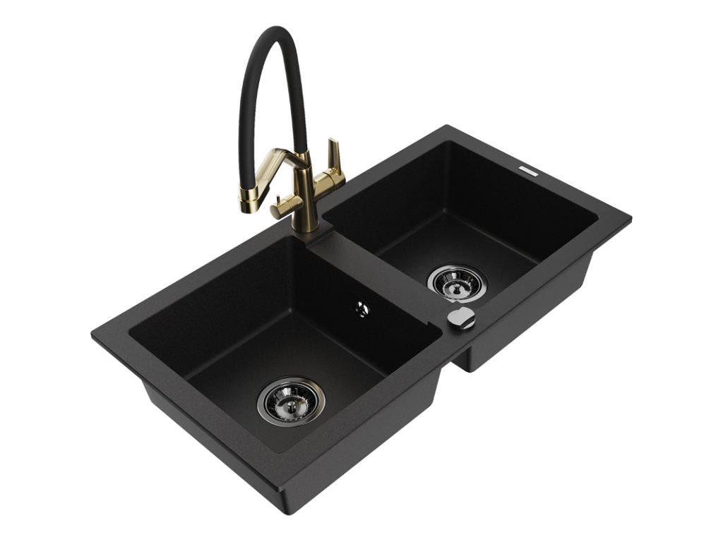 Granitový drez Mexen Mario s 2 misami a kuchynskou batériou Duo, čierny - 6504-77-671701-57-B