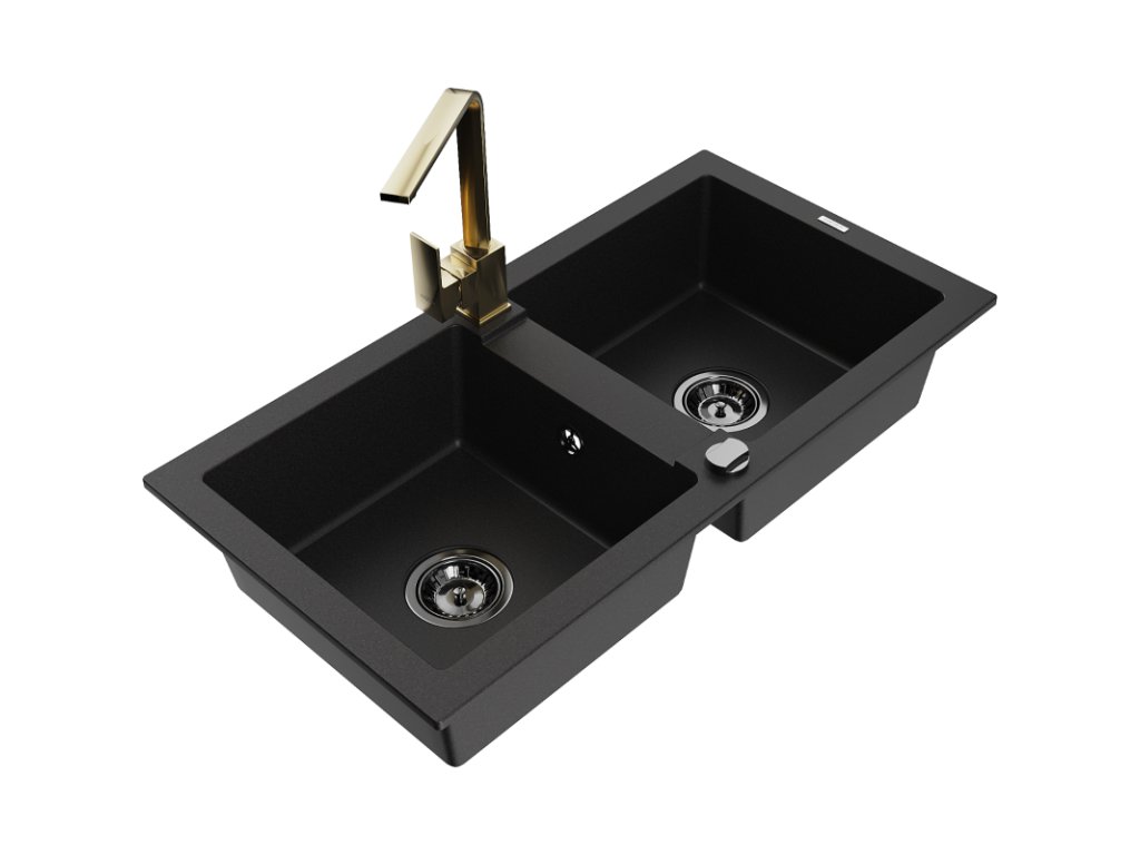 Granitový drez Mexen Mario s 2 misami a kuchynskou batériou Rita, čierny - 6504-77-670300-50-B
