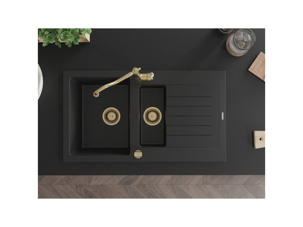 Granitový drez Mexen Matias s 1,5 misky, odkapávačom a kuchynskou batériou Carla, čierny - 6502-77-670700-50