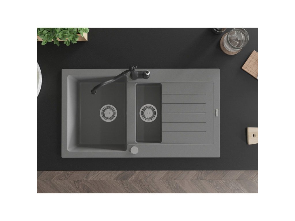 Granitový drez Mexen Matias s 1,5 misy, odkapávačom a kuchynskou batériou Carla, sivý - 6502-71-670700-70