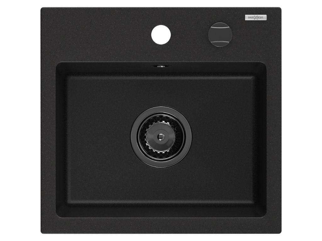 Granitový drez Mexen Milo s 1 misou 435 x 410 mm, čierny, čierny sifón - 6505441000-77-B