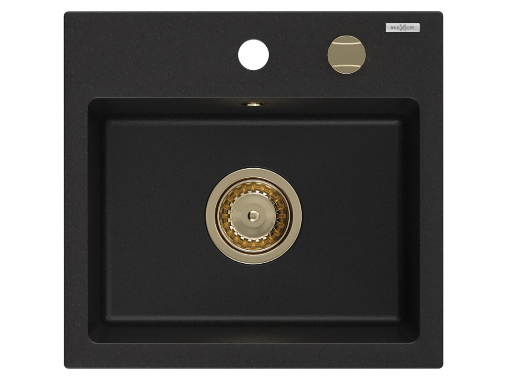 Granitový drez Mexen Milo s 1 misou 435 x 410 mm, čierny, zlatý sifón - 6505441000-77-G