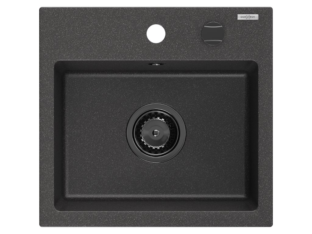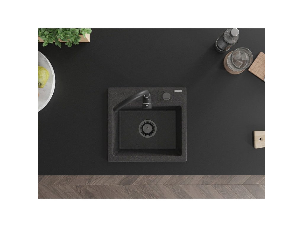 Granitový drez Mexen Milo s 1 misou 435 x 410 mm, čierny bodkovaný, čierny sifón - 6505441000-76-B