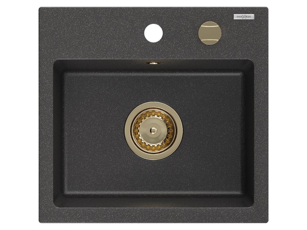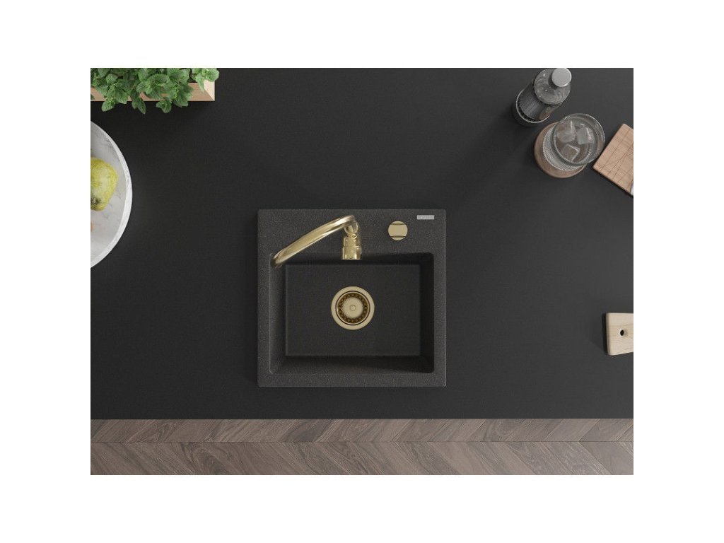 Granitový drez Mexen Milo s 1 misou 435 x 410 mm, čierny bodkovaný, zlatý sifón - 6505441000-76-G