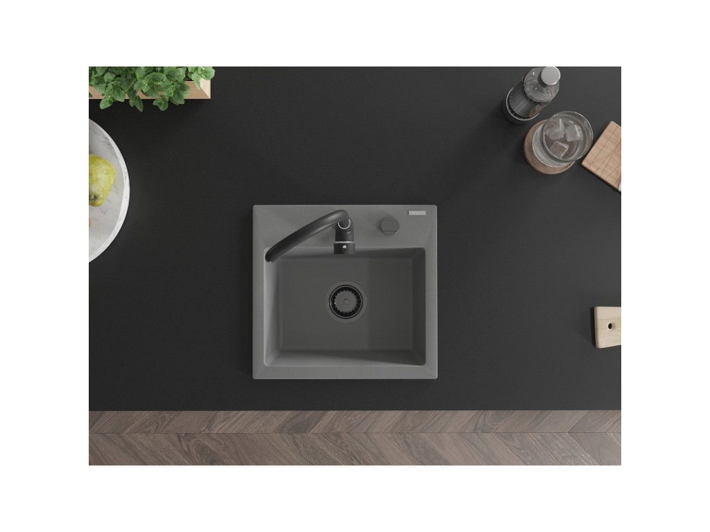 Granitový drez Mexen Milo s 1 misou 435 x 410 mm, sivý, čierny sifón - 6505441000-71-B