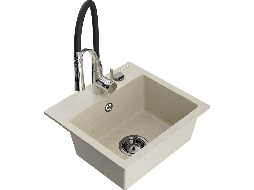 Granitový drez Mexen Milo s 1 misou a kuchynskou batériou Aster, béžový - 6505-69-73450-07-B
